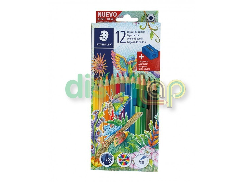 LAPICES STAEDTLER ESTUCHE X12 COLORES LARGOS+SACAPUNTAS