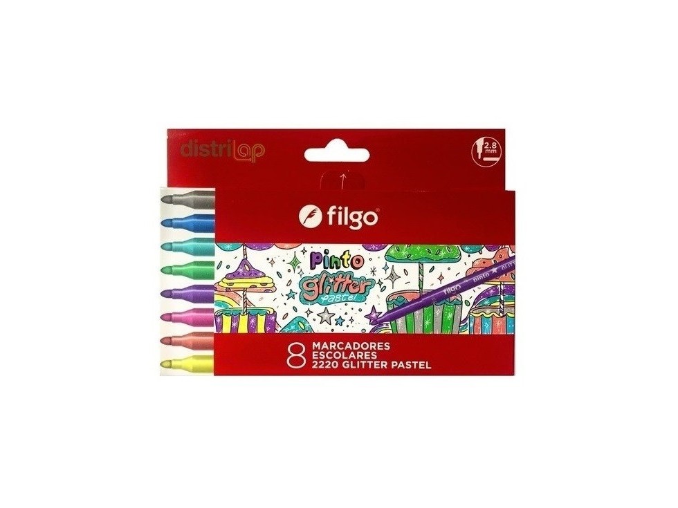 MARCADOR FILGO ESTUCHE X8 COLORES GLITTER ESCOLAR Detalle