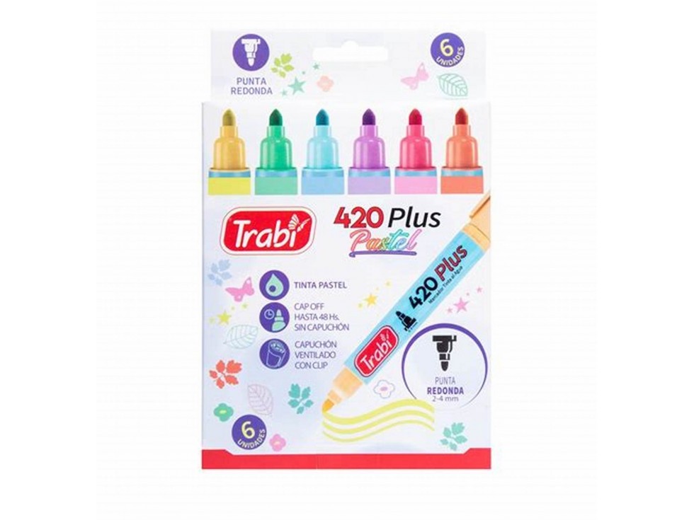 MARCADOR TRABI 420 PASTEL BLISTER X6 COLORES Detalle