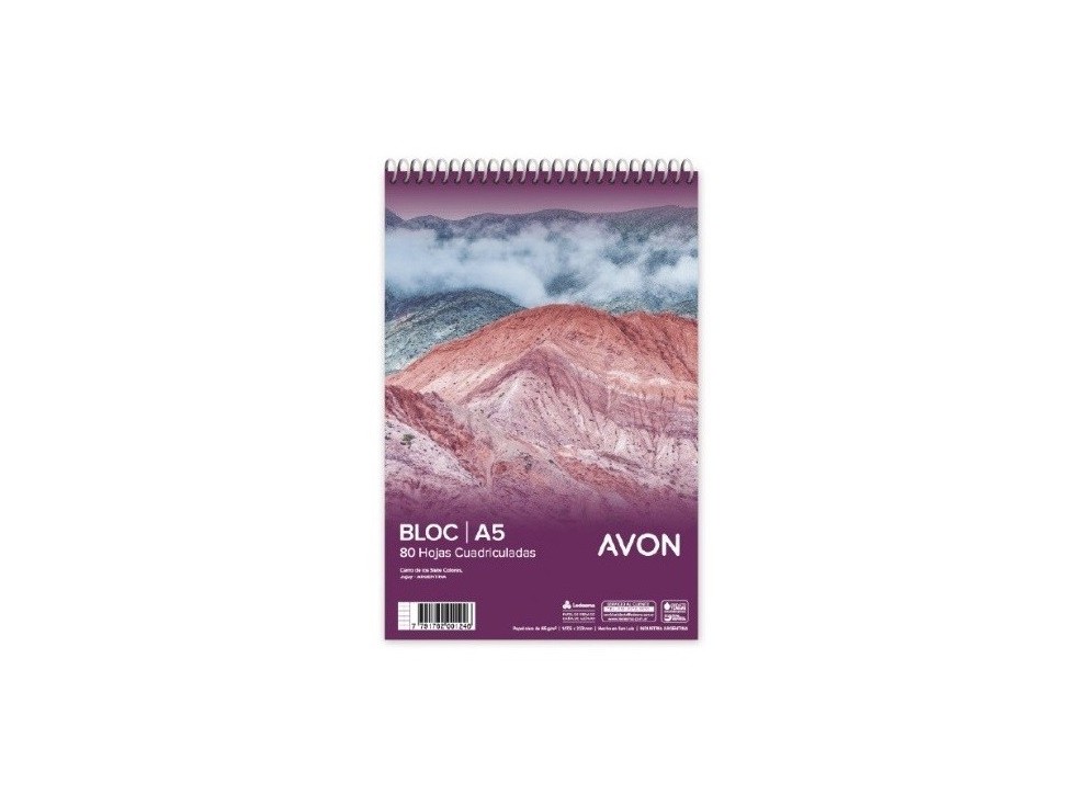 BLOCK AVON A5 X80 CUAD PAQ X10 UNID C/ESPIRAL (103720) Detalle