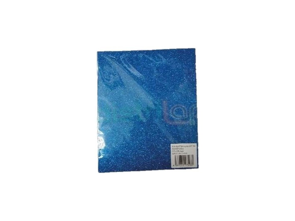 GOMA EVA A4 GLITTER AZUL PAQ X5 UNID ADHESIVA Detalle