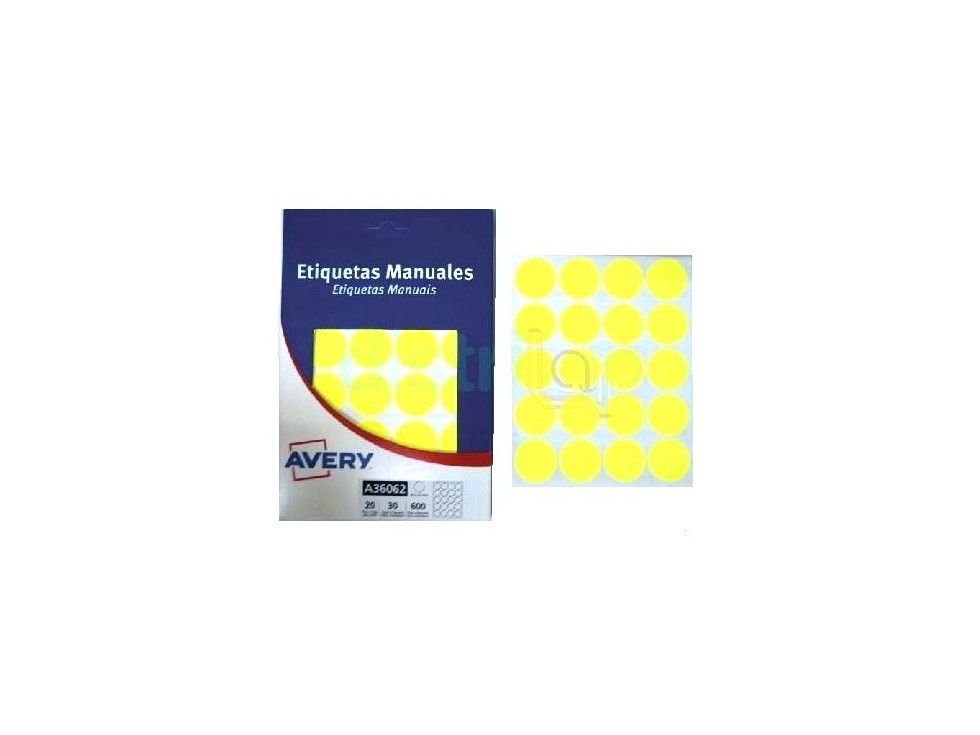 ETIQUETA AVERY A36062 FLUO AMARILLO REDONDA 25 MM X600 UNID