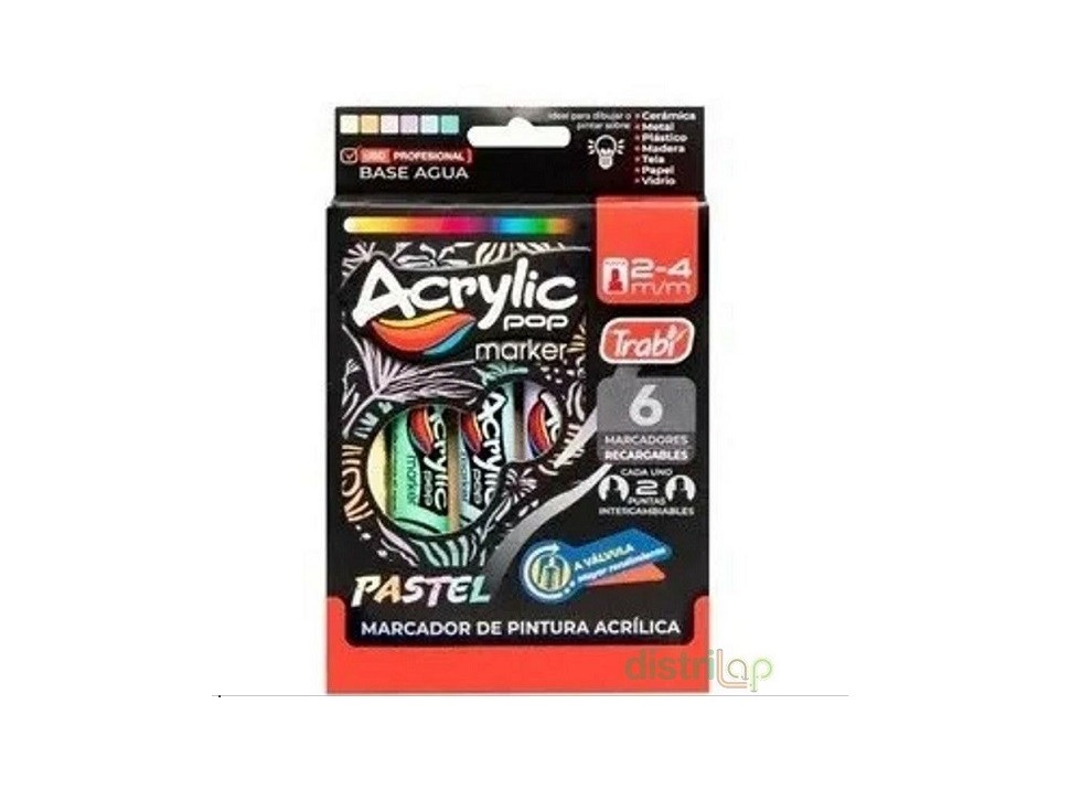 MARCADOR TRABI PINTURA ACRILICA X6 COLORES PASTELES (34088) Detalle