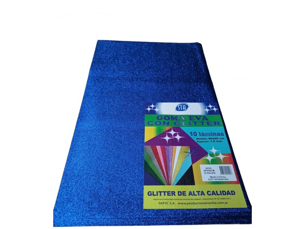 GOMA EVA STA GLITTER AZUL 40 X60 CM PAQ X10 HJ (40102-2) Detalle