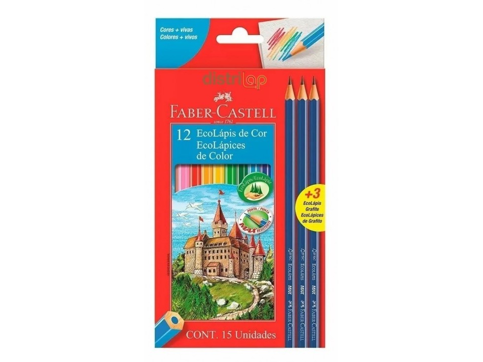 LAPICES FABER X12 COLORES LARGOS+3 LAPIZ GRAFITO Detalle