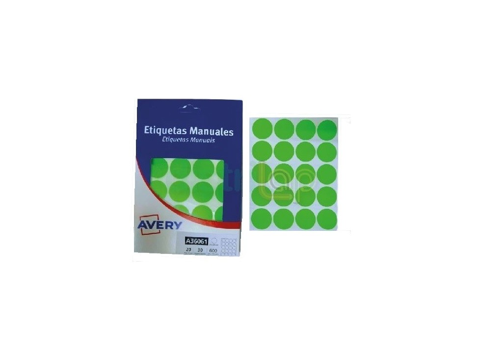 ETIQUETA AVERY A36061 FLUO VERDE REDONDA 25 MM X600 UNID Detalle
