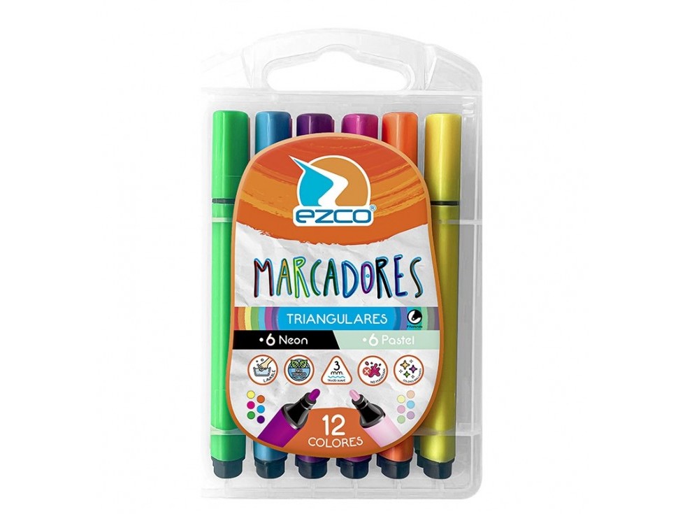 MARCADOR EZCO TRIANGULAR X12 NEON + PASTEL