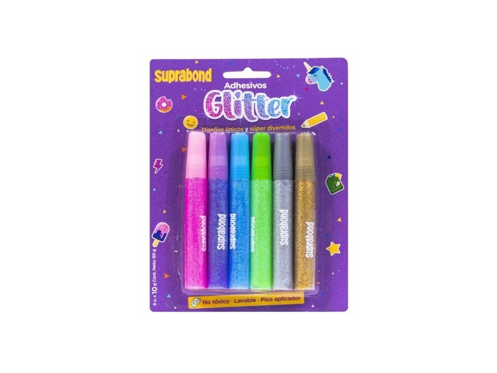 ADHESIVO GLITTER SUPRABOND X6 COLORES POMO X10 G C/U Detalle