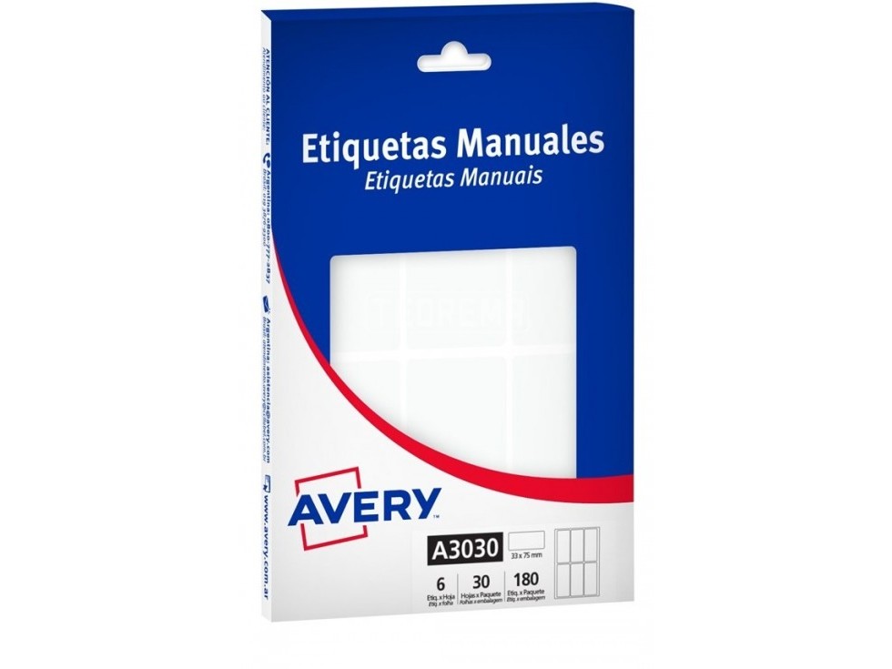 ETIQUETA AVERY BLANCA A3030 33 X75 MM X180 UNID Detalle
